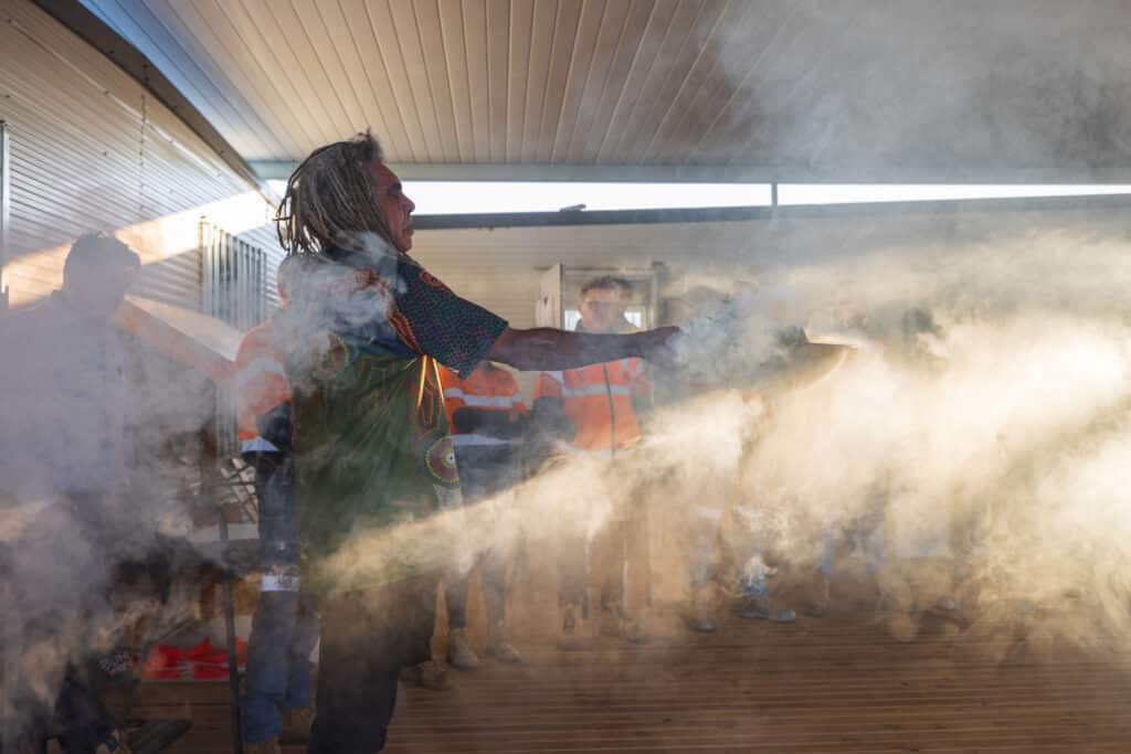As the CMC HULL Joint Venture established our main compound for the Lismore flood recovery portfolio, we were honoured to participate in a powerful smoking ceremony led by Gilbert Laurie, a proud member of the Yaegl and Widjibal tribes of the Bundjalung Nation.